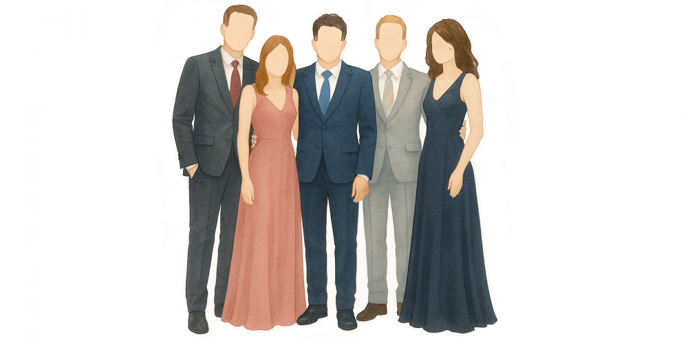 Pedimos a gentileza de que os convidados estejam vestidos com traje social, sendo indicado para os homens o uso de terno e gravata ou camisa e calça social, e para as mulheres vestidos, conjuntos ou peças de alfaiataria.